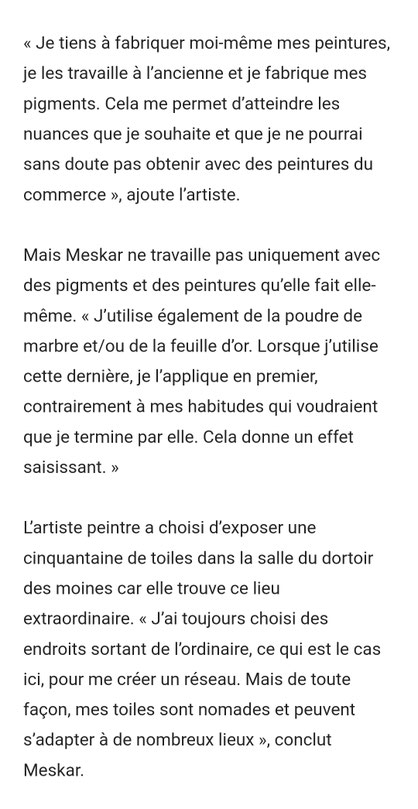 Ce que j’aime dans mon travail, c’est de peindre, bien entendu, mais surtout de partager, d’avoir un regard sur mon travail, mes peintures. Ce qui me plaît, c’est l’humain. Et il n’y a rien de mieux que les expositions pour se rencontrer.